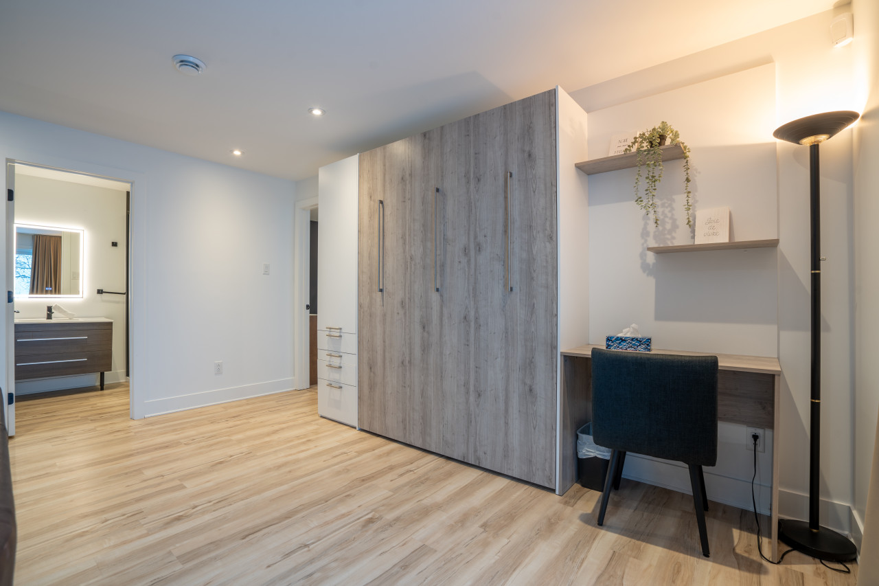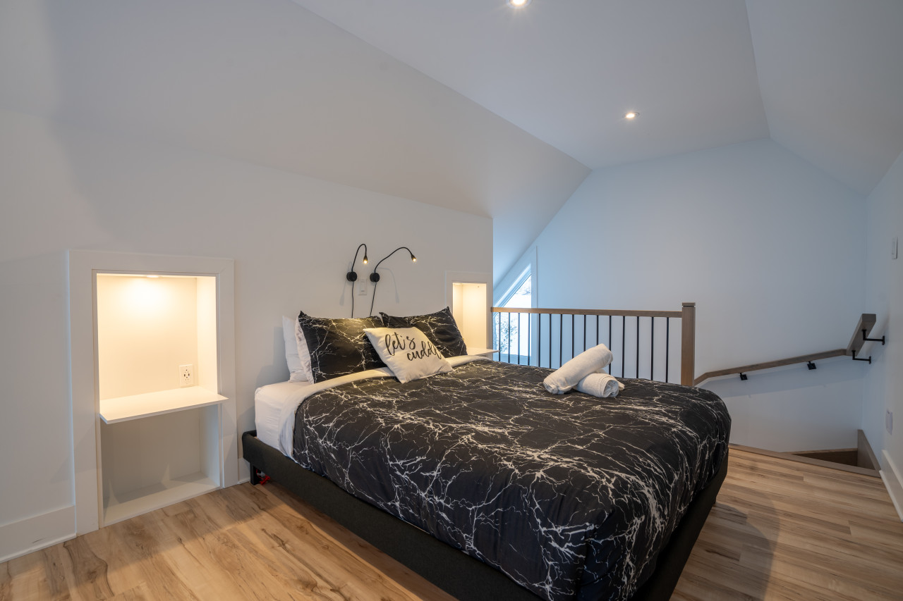 We offer two private bedrooms that offer intimacy and tranquility, along with an open-air bedroom in the mezzanine, adding a touch of originality to the living space. Furthermore, a queen size murphy beed is available in the living room.